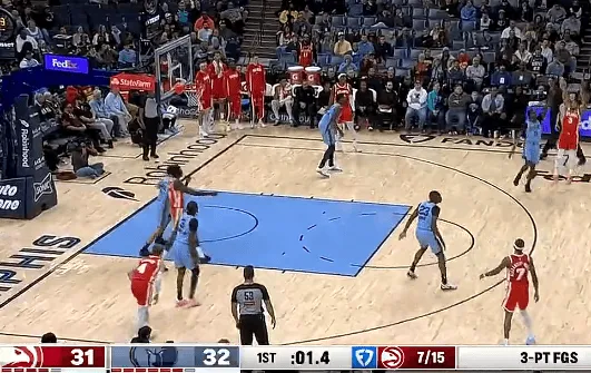 比赛的第一节,麦科勒姆超远干拔三分不中,老鹰首节31-32落后于灰熊。